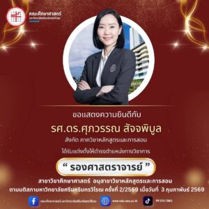 ขอแสดงความยินดีกับ รศ.ดร.ศุภวรรณ สัจจพิบูล อาจารย์ประจำภาควิชาหลักสูตรและการสอน